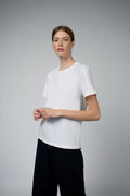Our Adry crew neck tee has a slim cut and stops a few inches below the waist. The certified organic cotton fabric is dense, luxurious and comes from a sustainable mill in Portugal. All the seams are clean finished for a polished, elevated look. We are convinced that once you try them, Santicler tees will become your new wardrobe staples.