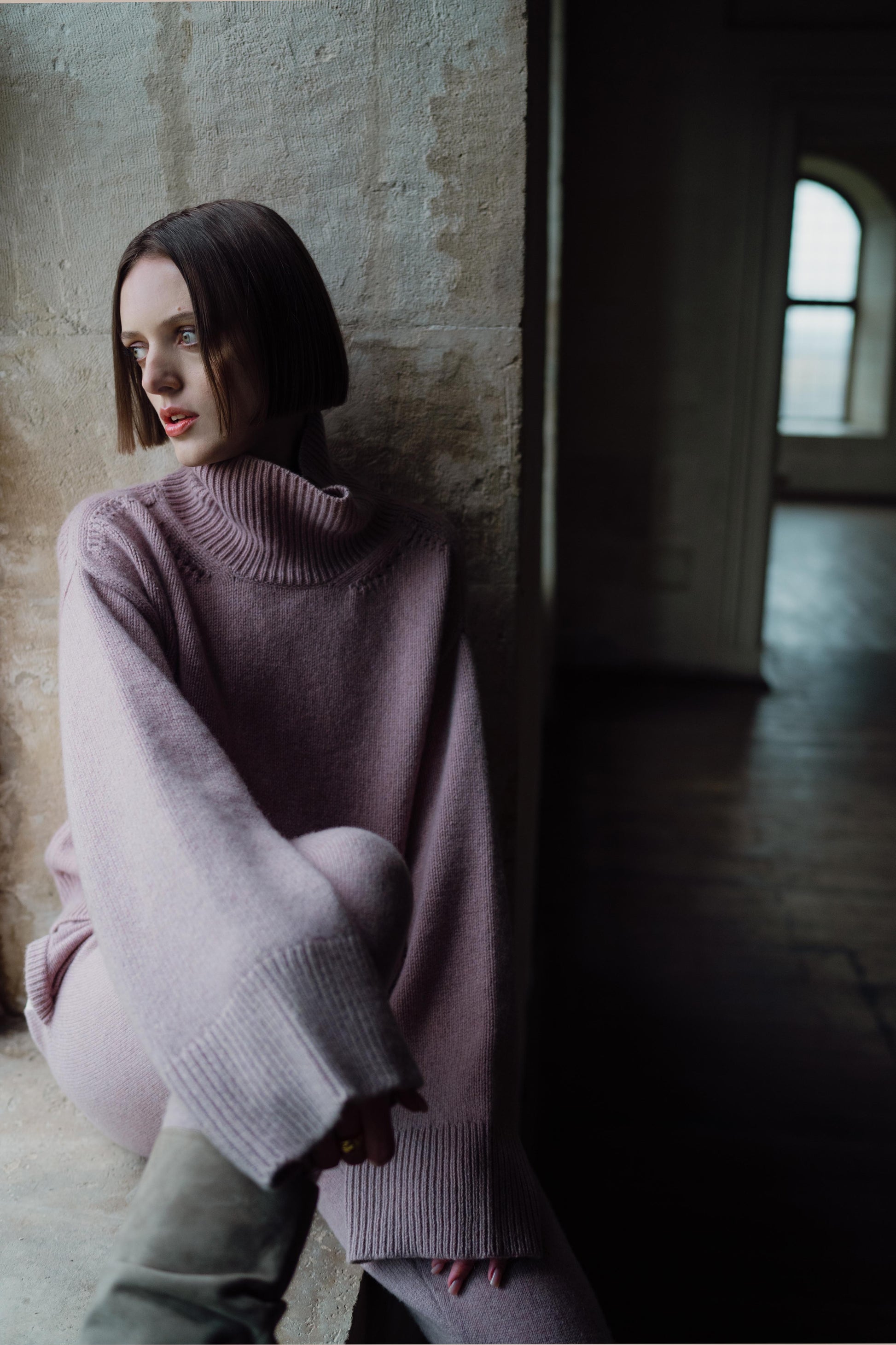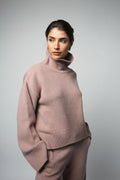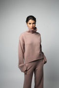 The Cio sweater in Mauve has been knitted in Romania using a luxurious eco-cashmere yarn from a leading Italian mill. Featuring a relaxed fit, dropped shulders and elongated sleeves, wear your hair tucked in the turtleneck and pair with jeans or tailored pieces for an effortless look. Fit: Bianca, our model is 5.8" or 1.77 m tall and wears size 1. Made from a medium-weight knit, the sweater measures approximately 21" (53 cm) at front and 24"(60 cm) at back from shoulder to hem. Content: 100% eco cashmere.