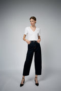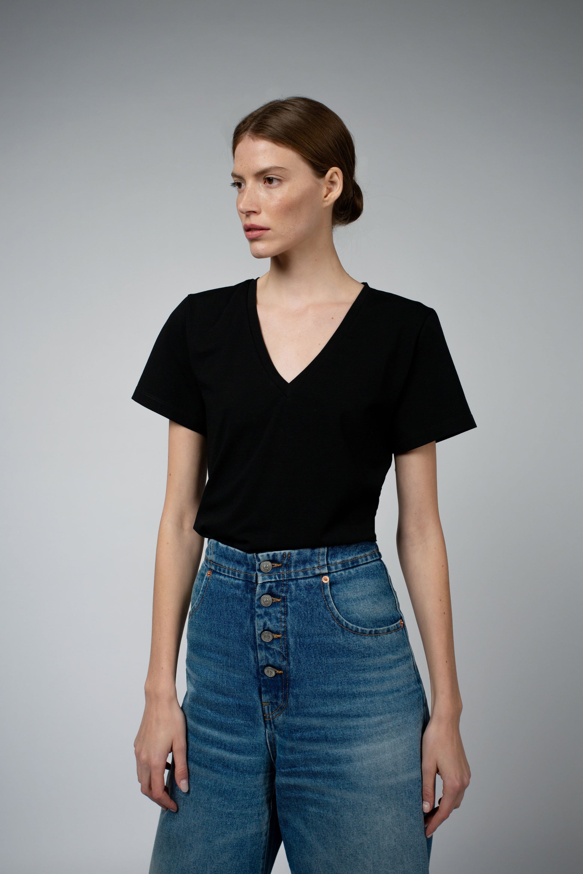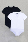 The Nora v-neck bodysuit combines the comfort of an easy t-shirt with the versatility and polished look of a bodysuit. Made from our signature organic cotton jersey, the style is contrasted with a laser cut nylon panty and has a comfortable snap closure. A bundle or set consists of two bodysuits in the same size. You can select both pieces in white, black, or one of each.