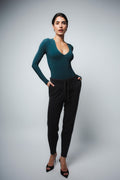 NOVA MICROJERSEY V-NECK BODYSUIT IN FERN