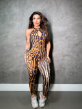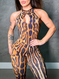 SCRUNCH BOOTY BROWN LEOPARD DROP DETAIL JUMPSUIT
